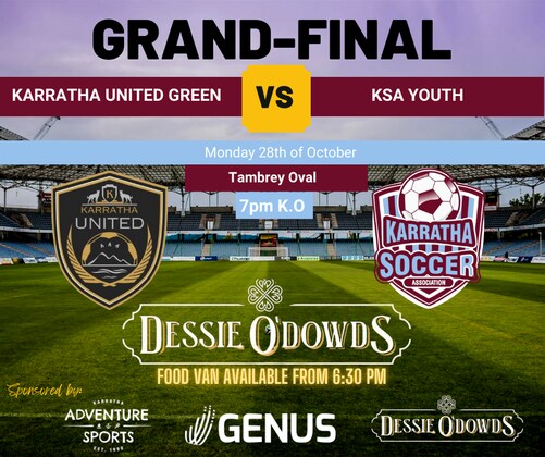 YOU ARE INVITED! For the Final Showdown of the year! Karratha United VS KSA Youth in a head to head clash. 7pm Kick off @ Tambrey Oval Monday 28th of Oct Dinner is sorted with the Dessie O'Dowds food van from 6:30PM Karratha United: filled with experience ranging from European academies, NPL teams across Australia, EX KSA country week champions and new talent moving to town. KSA Youth: A mix of U21, U17, U15 and maybe a coach or two From the Karratha Soccer Association country week teams many of whom a battle hardened fresh from Perth hungry for the next fight! whether you are an adult looking for soccer opportunities in Karratha or a junior wondering where your playing career will advance to, this action packed night has all you need to see!